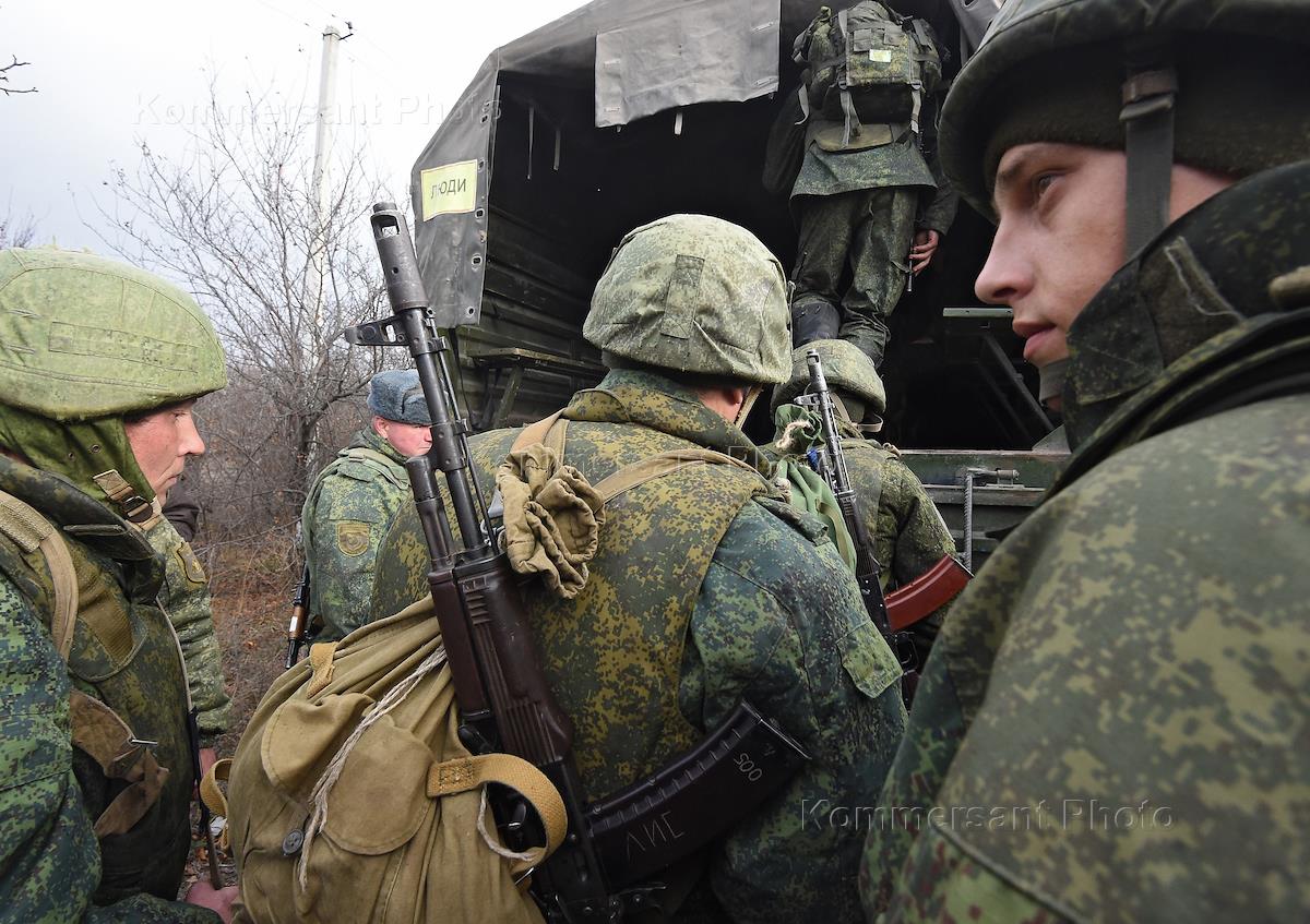 Политическая ситуация в Донецкой области. Начало отвода сил самопровозглашенной Донецкой Народной Республики (ДНР) на участке у линии соприкосновения в Донбассе в районе поселка Петровское. Фотограф ИД "Коммерсантъ" Анатолий Жданов на линии соприкосновения.