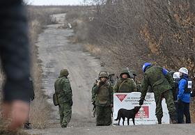 Политическая ситуация в Донецкой области. Начало отвода сил самопровозглашенной Донецкой Народной Республики (ДНР) на участке у линии соприкосновения в Донбассе в районе поселка Петровское. Представители ОБСЕ на линии соприкосновения.