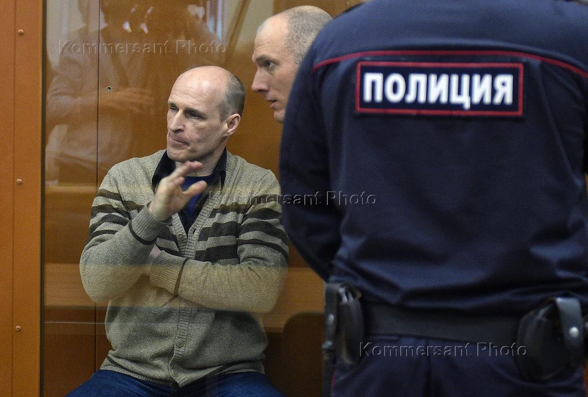 Заседание суда по делу группировки "Артподготовка" во 2-ом Западном окружном военном суде. Участник группировки Юрий Корный во время заседания.