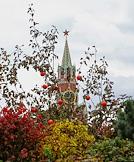 Жанровая фотография. Многоэтажные жилые дома в районе Останкинской телебашни и желтые осенние листья.