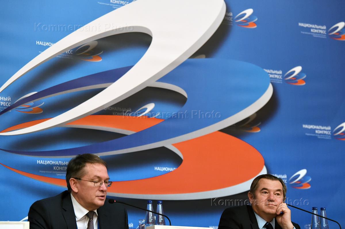 XIV Национальный конгресс "Модернизация промышленности России: приоритеты развития" в "Президент-Отеле". Член Коллегии Евразийской экономической комиссии (ЕЭК) от России Сергей Глазьев (в центре) на конгрессе.
