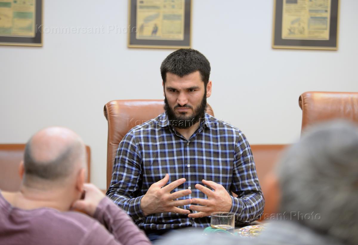 Интервью боксера Артура Бетербиева в редакции "Коммерсантъ". Слева направо: корреспондент ИД "Коммерсантъ" Муса Мурадов, генеральный директор АО "Коммерсантъ" Владимир Желонкин и заведующий отделом спорта редакции газеты "Коммерсантъ" Грант Косян во время встерчи с боксером Артуром Бетербиевым.