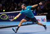 Итоговый турнир ATP (Association of Tennis Professionals). Швейцарский теннисист Роджер Федерер во время матча против итальянского теннисистка Маттео Берреттини.