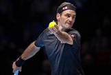Итоговый турнир ATP (Association of Tennis Professionals). Швейцарский теннисист Роджер Федерер во время матча против итальянcкого теннисистка Маттео Берреттини.