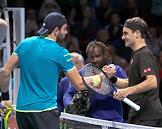 Итоговый турнир ATP (Association of Tennis Professionals). Швейцарский теннисист Роджер Федерер (справа) и итальянcкий теннисист Маттео Берреттини (слева) после матча.