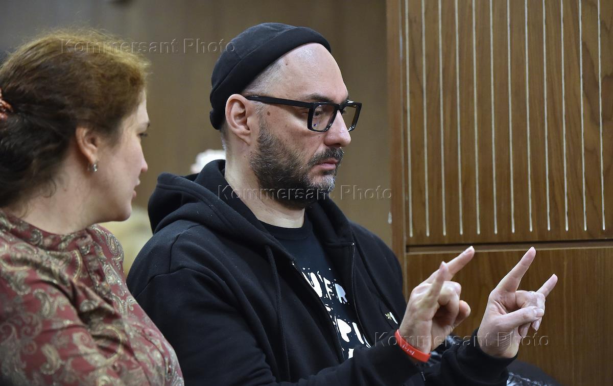 Рассмотрение дела "Седьмой студии" в Мещанском районном суде. Директор Российского Академического Молодежного театра (РАМТ) Софья Апфельбаум (слева) и художественный руководитель "Гоголь-центра" Кирилл Серебренников (справа) во время заседания суда.