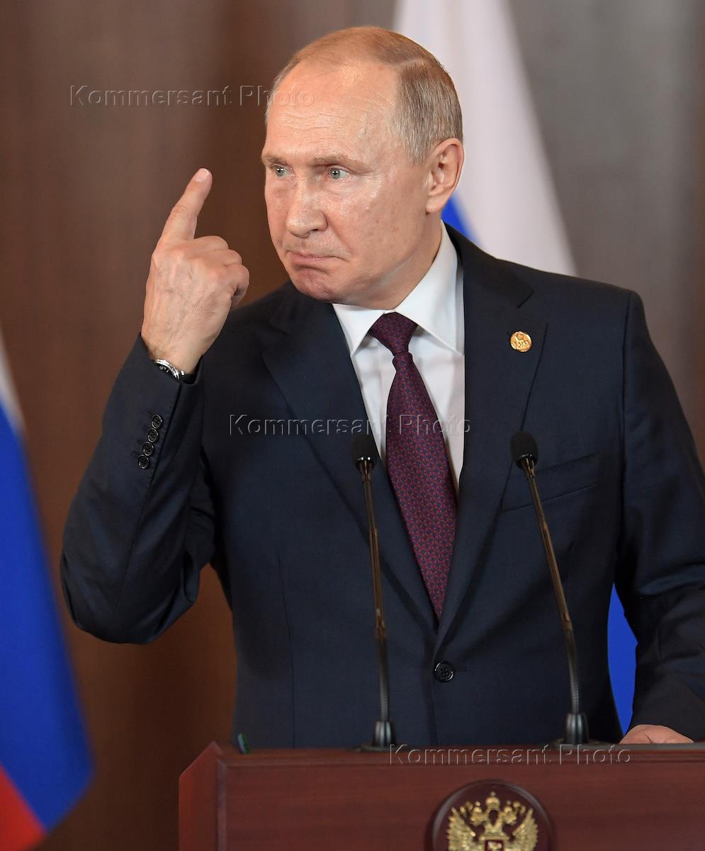 Рабочая поездка президента России Владимира Путина в Бразилию. Саммит БРИКС. Президент России Владимир Путин во время выступления на пресс-конференции по итогам работы саммита.