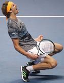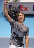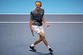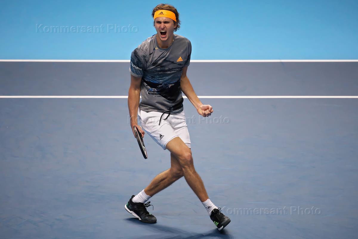 Итоговый чемпионат АТР. Немецкий теннисист Александр Зверев во время матча с российским теннисистом Даниилом Медведевым.
