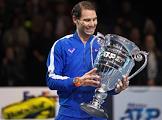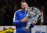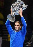 Итоговый турнир ATP (Association of Tennis Professionals). Испанский теннисист Рафаэль Надаль с кубком победителя турнира после финального матча с греческим теннисистом Стефаносом Циципасом.