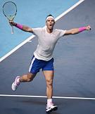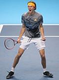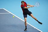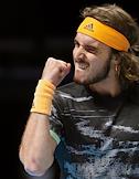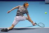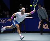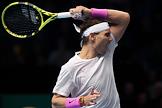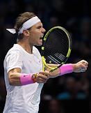 Итоговый чемпионат АТР. Испанский теннисист Рафаэль Надаль во время матча с греческим теннисистом Стефоносом Циципасом.