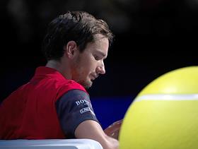 Итоговый чемпионат АТР. Российский теннисист Даниил Медведев во время матча с немецким теннисистом Александром Зверевым.