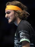 Итоговый турнир ATP (Association of Tennis Professionals). Греческий теннисист Стефанос Циципас во время финального матча с испанским теннисистом Рафаэлем Надалем.