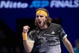 Итоговый чемпионат АТР. Греческий теннисист Стефанос Циципас во время матча с испанским теннисистом Рафаэлем Надалем.
