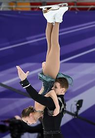 ISU Гран-при "Кубок Ростелеком" - 2019 по фигурному катанию во Дворце спорта "Мегаспорт". Польские фигуристы Наталья Калишек и Максим Сподырев во время выступления в произвольной программе.