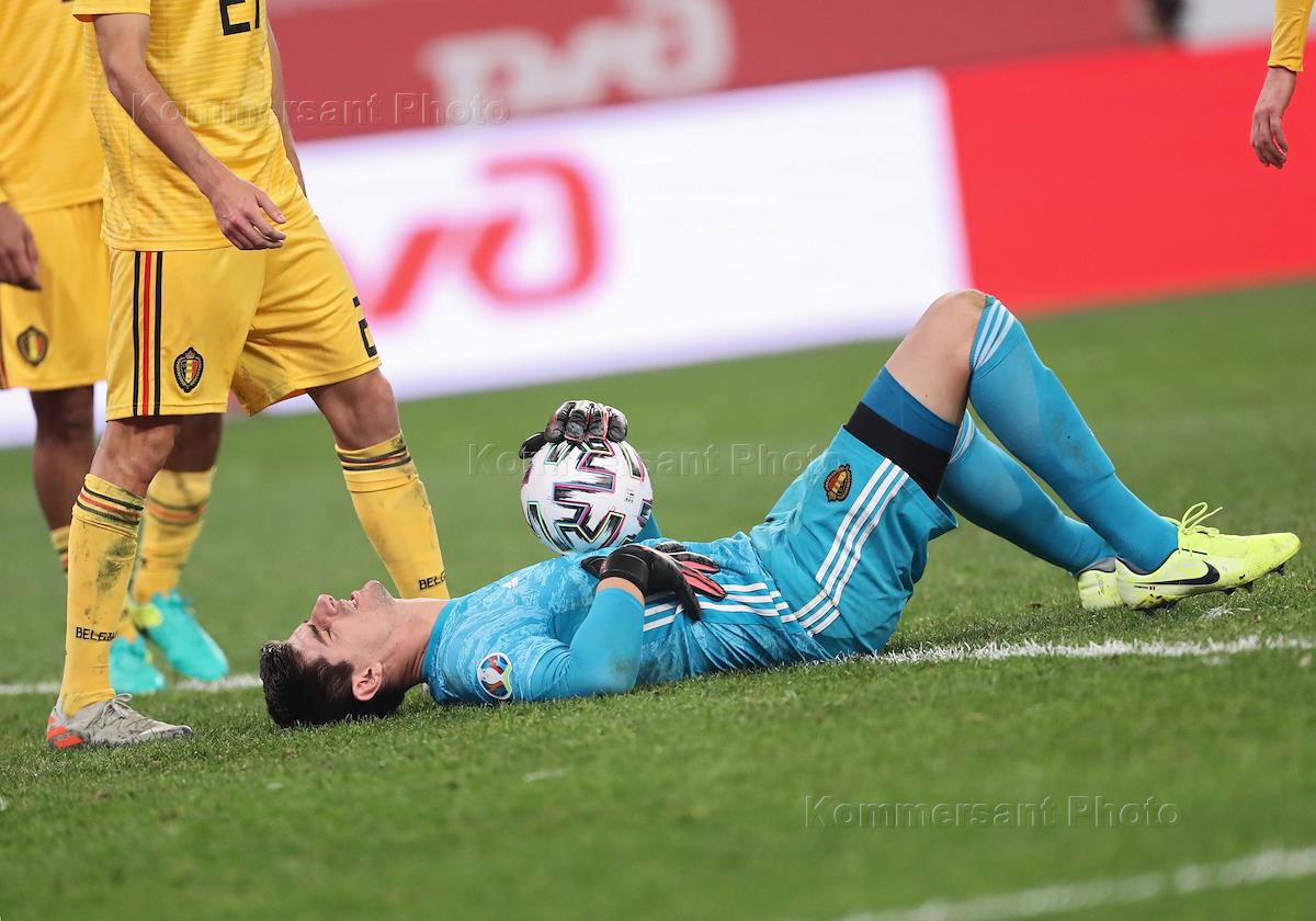 Матч отборочного турнира Чемпионата Европы-2020 по футболу между национальными сборными России и Бельгии на стадионе "Санкт-Петербург Арена". Вратарь сборной Бельгии Тибо Куртуа во время матча.