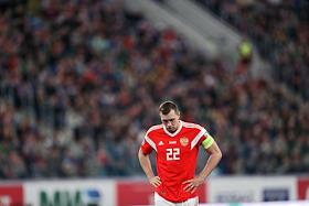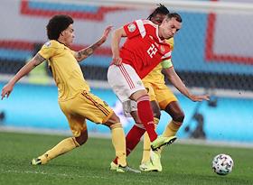 Матч отборочного турнира Чемпионата Европы-2020 по футболу между национальными сборными России и Бельгии на стадионе "Санкт-Петербург Арена". Игрок сборной России Артем Дзюба во время матча.