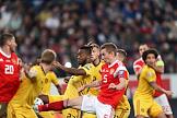 Матч отборочного турнира Чемпионата Европы-2020 по футболу между национальными сборными России и Бельгии на стадионе "Санкт-Петербург Арена". Игрок сборной России Артем Дзюба (второй слева) во время матча.