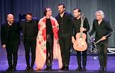 XVIII Международный фестиваль фламенко "Viva España!". Сольный спектакль хореографа Рубена Ольмо Horas Contigo ("Часы с тобой") на сцене Театра "Русская песня". Хореограф, танцовщик, директор Национального балета Испании Рубен Ольмо (третий слева) во время спектакля.