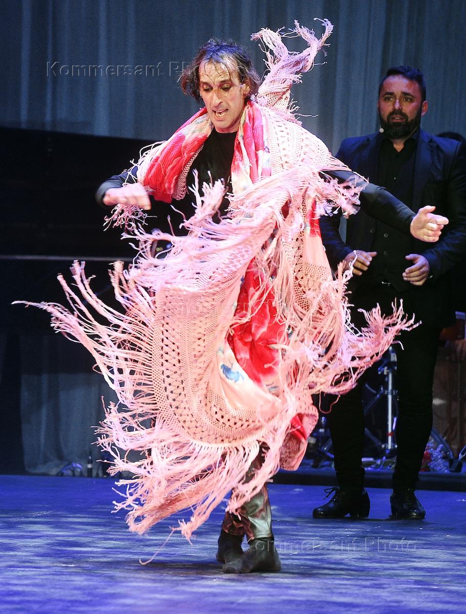 XVIII Международный фестиваль фламенко "Viva España!". Сольный спектакль хореографа Рубена Ольмо Horas Contigo ("Часы с тобой") на сцене Театра "Русская песня". Хореограф, танцовщик, директор Национального балета Испании Рубен Ольмо (слева) во время спектакля.