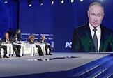 XI Инвестиционный форум ВТБ Капитал "Россия зовет!" в Центре международной торговли. Президент России Владимир Путин во время пленарного заседания "Мосты над волнами деглобализации".