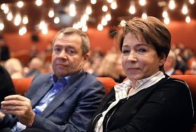 Премьера фильма режиссера Анны Пармас "Давай разведемся!" в кинотеатре "Каро 11 Октябрь". Дочь первого президента России Бориса Ельцина, директор фонда первого президента России Б.Н. Ельцина Татьяна Юмашева (справа) и ее супруг, бывший руководитель администрации президента России Валентин Юмашев на премьере.