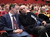 Премьера фильма режиссера Анны Пармас "Давай разведемся!" в кинотеатре "Каро 11 Октябрь". Директор ООО "Кинокомпания "СТВ", продюсер Сергей Сельянов (справа) и генеральный директор телекомпании "Первый канал" Константин Эрнст (слева) на премьере.
