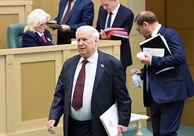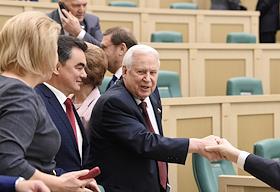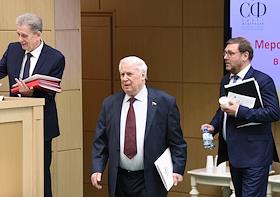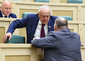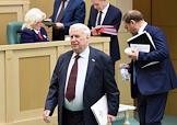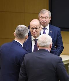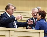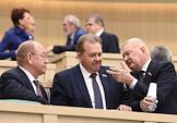 Пленарное заседание Совета Федерации (СФ) России. Представитель в Совете Федерации России администрации Белгородской области Николай Рыжков (в центре) перед началом заседания.