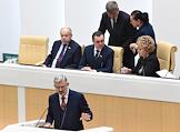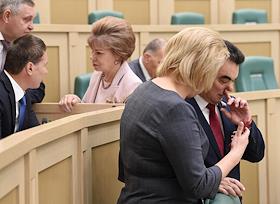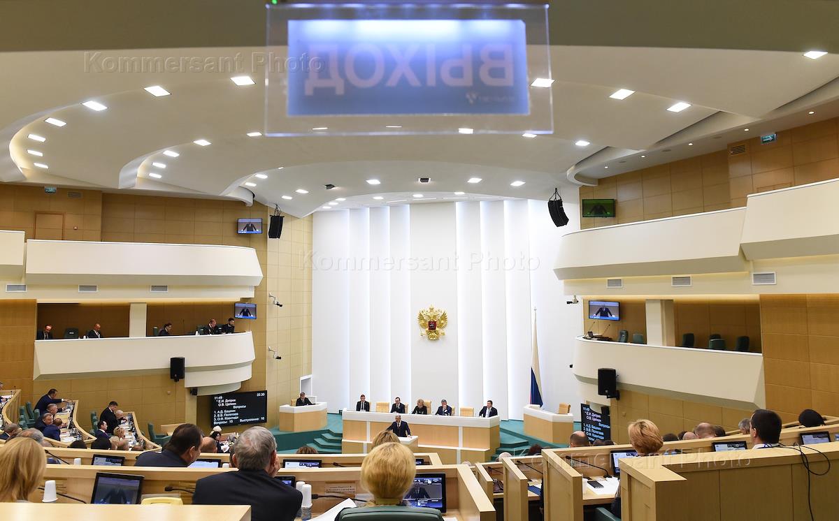 Пленарное заседание Совета Федерации (СФ) России. Члены СФ России во время заседания.