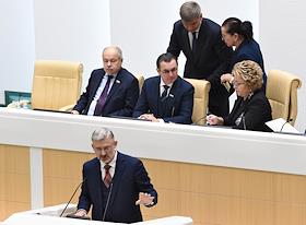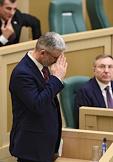 Пленарное заседание Совета Федерации (СФ) России. Министр транспорта России Евгений Дитрих (справа) во время заседания.