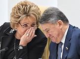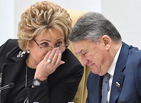 Пленарное заседание Совета Федерации (СФ) России. председатель СФ России Валентина Матвиенко (слева) и ее заместитель Юрий Воробьев (справа) во время заседания.