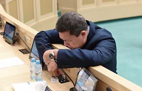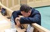 Пленарное заседание Совета Федерации (СФ) России. Член СФ России перед началом заседания.