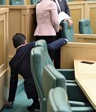Пленарное заседание Совета Федерации (СФ) России. Зал заседаний. Представитель от исполнителной власти Республики Северная Осетия - Алания Таймураз Мамсуров (слева) перед началом заседания.