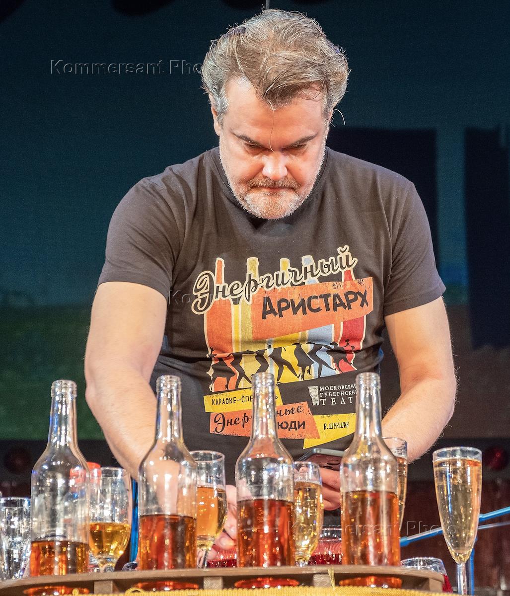 Премьера караоке-спектакля Московского губернского театра "Энергичные люди" по произведениям писателя Василия Шукшина на сцене ДК "Выборгский". Художественный руководитель Московского Губернского театра, режиссер спектакля Сергей Безруков перед началом премьеры.