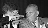 Глава Антимонопольного комитета России Леонид Бочин (слева) и первый заместитель министра топлива и энергетики России Анатолий Фомин (справа) во время заседания "круглого стола" по вопросам экспорта.