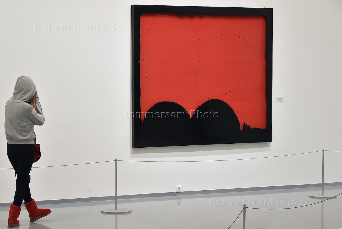 Церемония открытия выставки "Лучо Фонтана. Ретроспектива" в Мультимедиа Арт Музее. Посетители на выставке. Лучо Фонтана. "Пространственный концепт. Маленький театр".