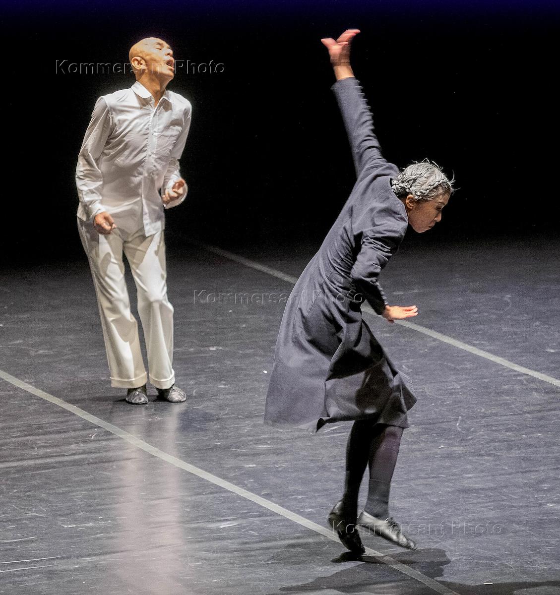 Балетный спектакль "Идиот/Труппа KARAS, Япония» (режиссер и хореограф Сабуро Тешигавара) на cцене ТЮЗ им. А.А. Брянцева в рамках международного фестиваля искусств "Дягилев P.S". Танцовщик и режиссер Сабуро Тэсигавара (слева) и его постоянная партнерша танцовщица Рихоко Сато (справа) во время спектакля.