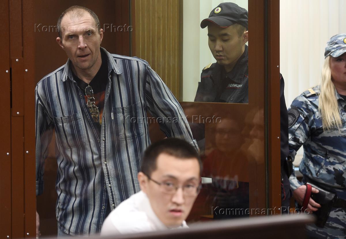 Рассмотрение по существу дела в отношении Эдуарда Малышевского, обвиняемого в применении насилия в отношении представителя власти на несанкционированной акции протеста 27 июля в Москве, в Тверском районном суде. Обвиняемый Эдуард Малышевский (слева) во время заседания суда.