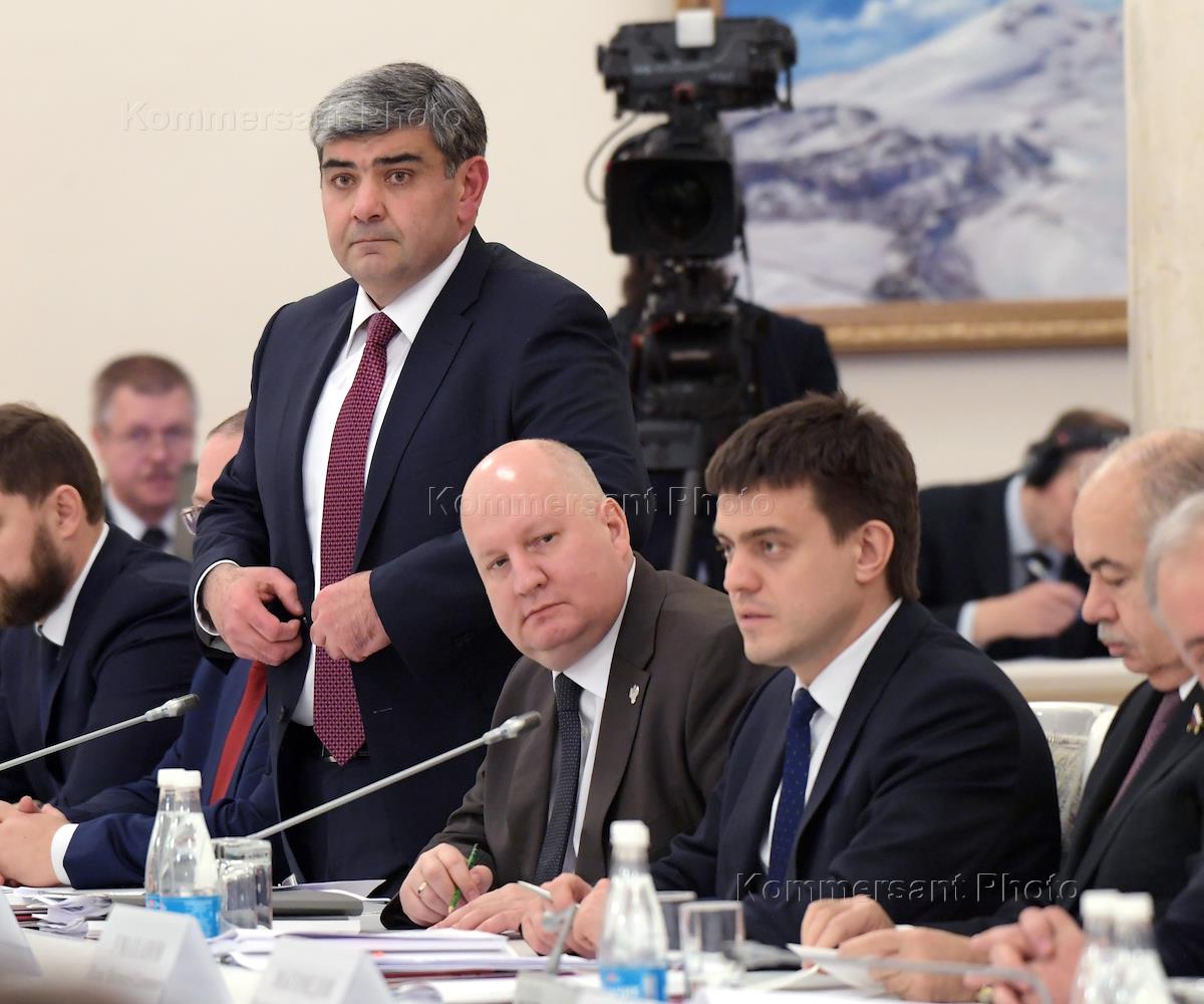 Рабочая поездка президента России Владимира Путина в Нальчик. Слева направо: глава Кабардино-Балкарской Республики Казбек Коков, министр России по делам Северного Кавказа Сергей Чеботарев и министр науки и высшего образования России Михаил Котюков во время заседания Совета при президенте по межнациональным отношениям. Заседания прошло в Доме Правительства Кабардино-Балкарской Республики.