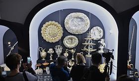 Пресс-показ выставки "Петр. Первый. Коллекционер, исследователь, художник" в выставочных залах Патриаршего дворца и Успенской звонницы Государственного историко-культурного музея-заповедника "Московский Кремль". Экспонаты выставки золотая чаша.