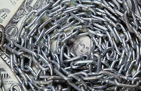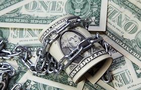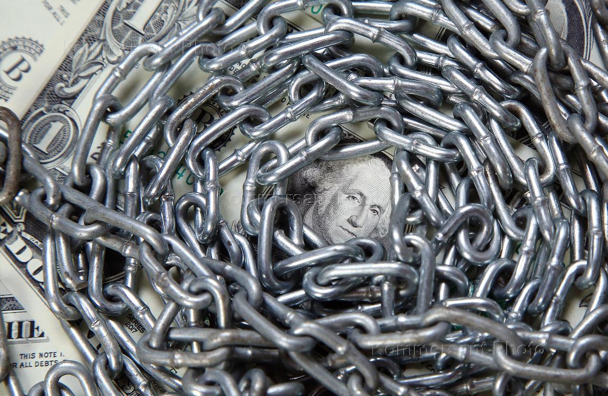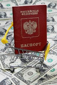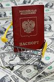 Жанровая фотография. Купюры американские доллары, паспорт гражданина России и тележка из супермаркета.