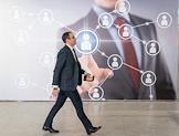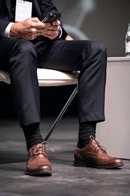 Жанровая фотография. Человек в деловом костюме с телефоном в руках.