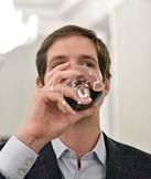 Премьера фильма "Встреча с Горбачевым" в кинотеатре "Иллюзион". Жанровая фотография. Бармен наливает вино в бокалы.