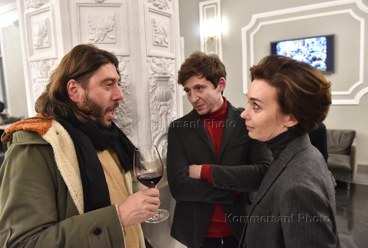 Премьера фильма "Встреча с Горбачевым" в кинотеатре "Иллюзион". Слева направо: продюсер Михаил Друян, журналисты Григорий Туманов и Евгения Милова на премьере.