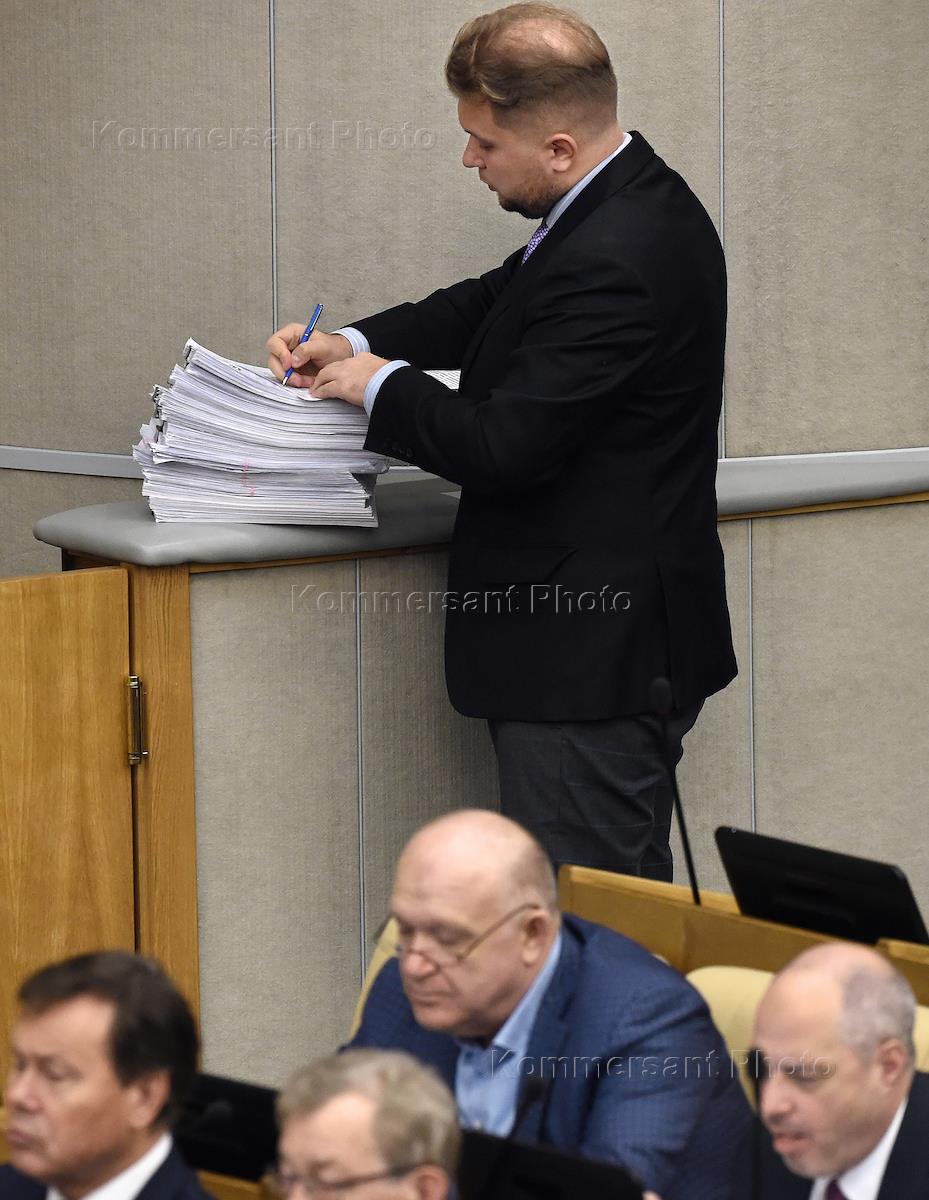 Пленарное заседание Государственной думы (ГД) России. Заместитель председателя комитета ГД России по энергетике Дмитрий Исламов во время заседания.