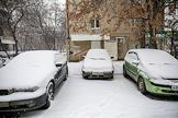 Снегопад в Екатеринбурге. Жанровая фотография. Припаркованные автомобили на улице.