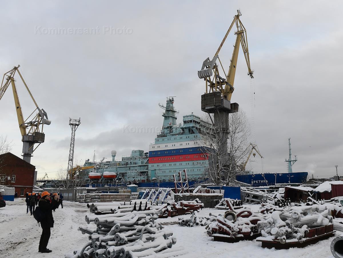 Строящийся ледокол "Арктика" у причальной стенки АО "Балтийский завод".