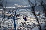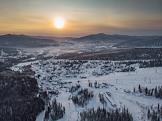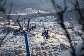 Жанровые фотографии. Виды горнолыжного курорта и одноименного посёлка Шерегеш, Кемеровской области. Горнолыжная трасса.