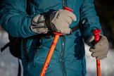 Жанровая фотография. Руки лыжника в перчатках, который спускается по горнолыжной трассе на горе Зёленая.