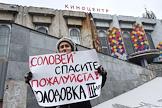 Снос здания киноцентра "Соловей на Красной Пресне". Пикет жителей города против сноса киноцентра.