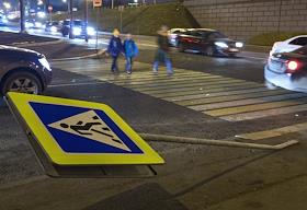 Жанровая фотография. Сломанные знак "Пешеходный переход" на улице Красная Пресня.